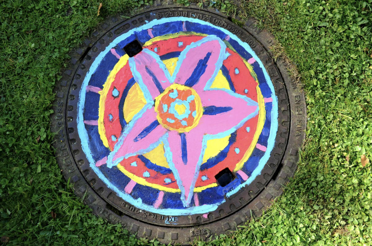 Aus grauen Kanaldeckeln werden bunte Blumen